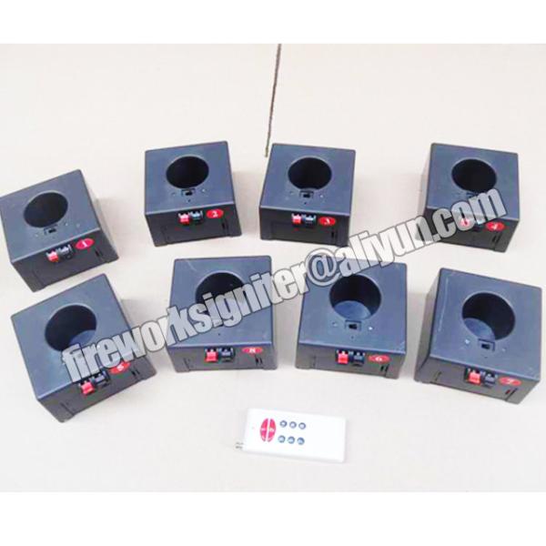 8 piece one group firing syste and one piece one key+one piece 4keys remote control panel.D series firing system is speical for cold flame fireworks. The biggest diameter is 4.2cm. It only use 2pc No.5 dry battery to supply power, output is 3V. The remote is "study" style, can set the control number by the user. That's meaning that you can fire many receivers at the same time.